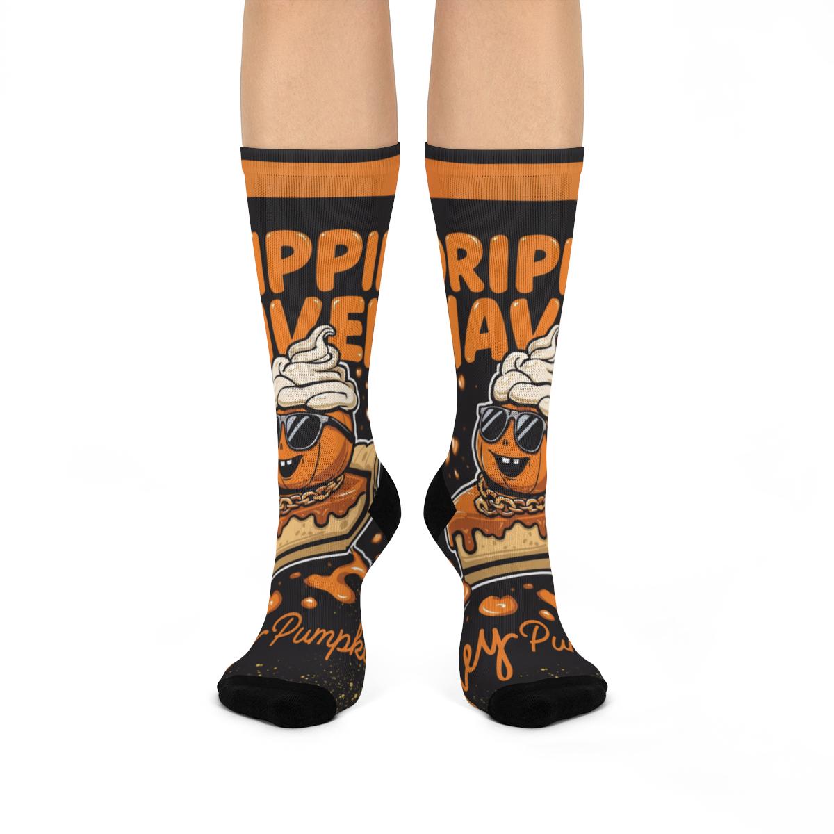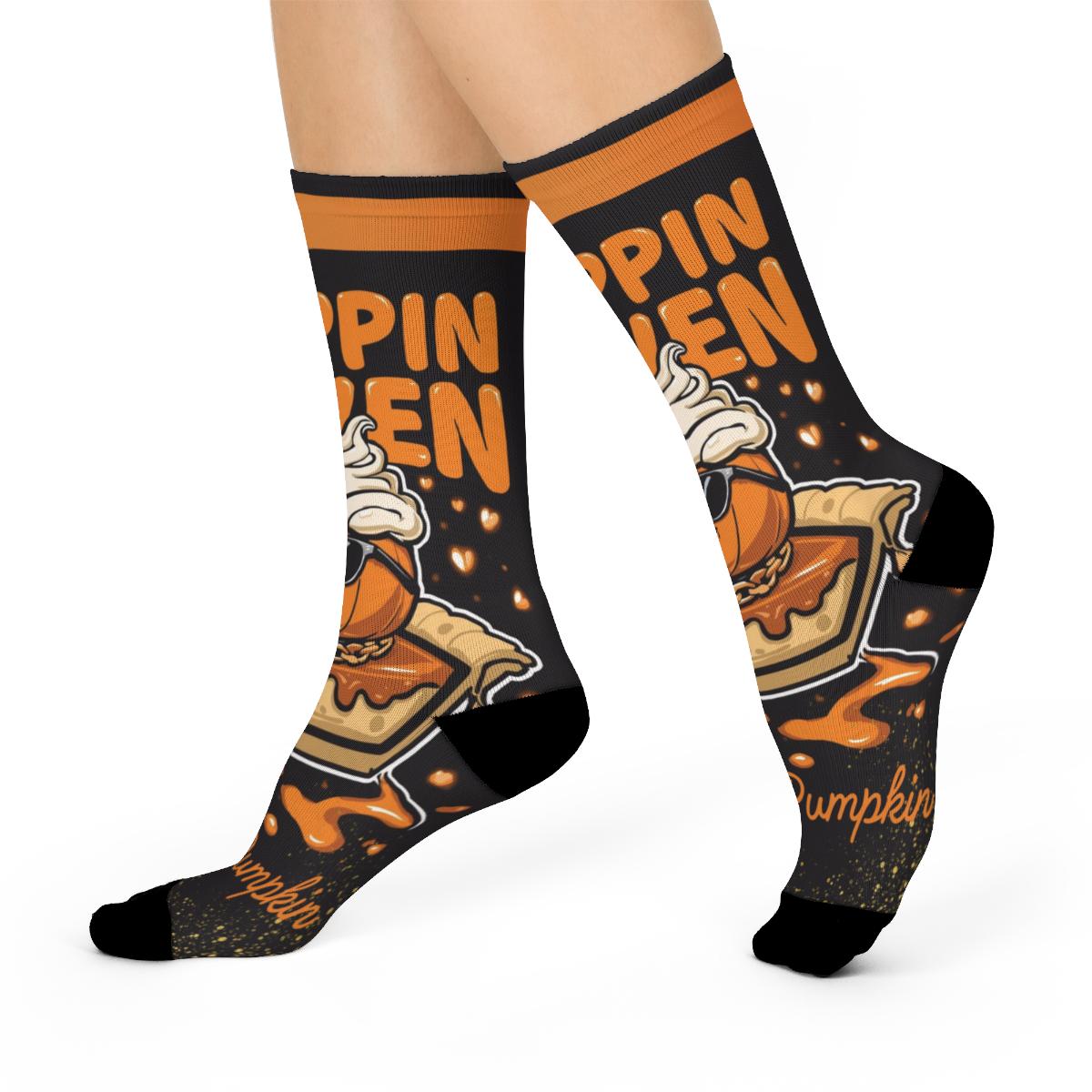 Pumpkin Pie Crew Socks | Cozy Fall Footwear, Gift for Thanksgiving, Novelty Socks, Cute Halloween Style, Pumpkin Lover Accessories
